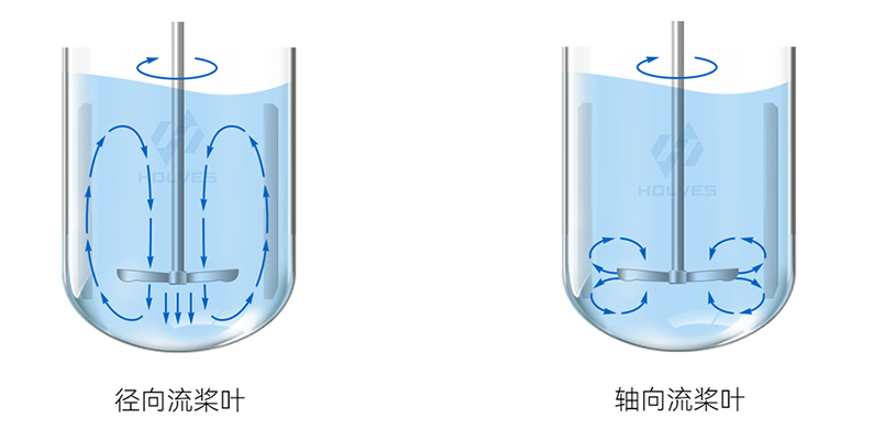 當(dāng)液流從攪拌槳軸推向罐體內(nèi)壁便形成徑向流,當(dāng)液流沿?cái)嚢铇S上下推動(dòng)便形成軸向流,同理當(dāng)攪拌槳帶動(dòng)液體既有徑向流動(dòng)又有軸向流動(dòng)時(shí)便為混合流。