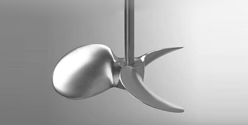 也被稱為推進(jìn)式攪拌槳,如圖所示。槳葉前面可為平面或凹面,但背面都是凹面。在旋轉(zhuǎn)時(shí)使液體向前方呈軸向流排出,使之在罐內(nèi)形成循環(huán),用于產(chǎn)生軸向流。這種槳葉循環(huán)速度較高,但是循環(huán)量較大,攪拌時(shí)產(chǎn)生的剪切力較小,但其和徑向流槳葉一樣,均是產(chǎn)生的單向流,因此混合效果較差,常用于低粘度流體,常用轉(zhuǎn)速范圍為100~500rpm。此類槳式及推進(jìn)式槳葉對(duì)氣體吸收過程基本上不適用,只有在少量易吸收的氣體或要求分散度不高時(shí)才能應(yīng)用。它主要用于液-液體系的混合、使溫度均一化、在低濃度固-液體系中防止淤漿沉降等或者某些特定的厭氧培養(yǎng)。 |